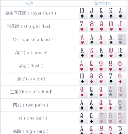 1. 德州扑克牌面大小排名